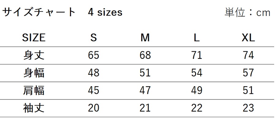 サイズ:S、M、L、XL 4サイズ展開